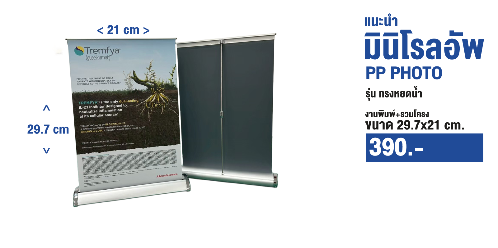 มินิโรลอัพทรงหยดน้ำ คือป้ายโฆษณาตั้งโต๊ะขนาดกะทัดรัดที่ออกแบบมาให้โดดเด่นกว่าแบบทั่วไป ด้วยฐานทรงหยดน้ำทันสมัย เพิ่มความพรีเมียมให้กับการนำเสนอแบรนด์ เหมาะสำหรับร้านค้า เคาน์เตอร์เซอร์วิส งานออกบูธ หรือจุดแสดงสินค้าในพื้นที่จำกัด ช่วยสื่อสารข้อความสำคัญได้ชัด เจนในพื้นที่เล็ก ๆ แต่ให้ความรู้สึกมืออาชีพเต็มร้อย