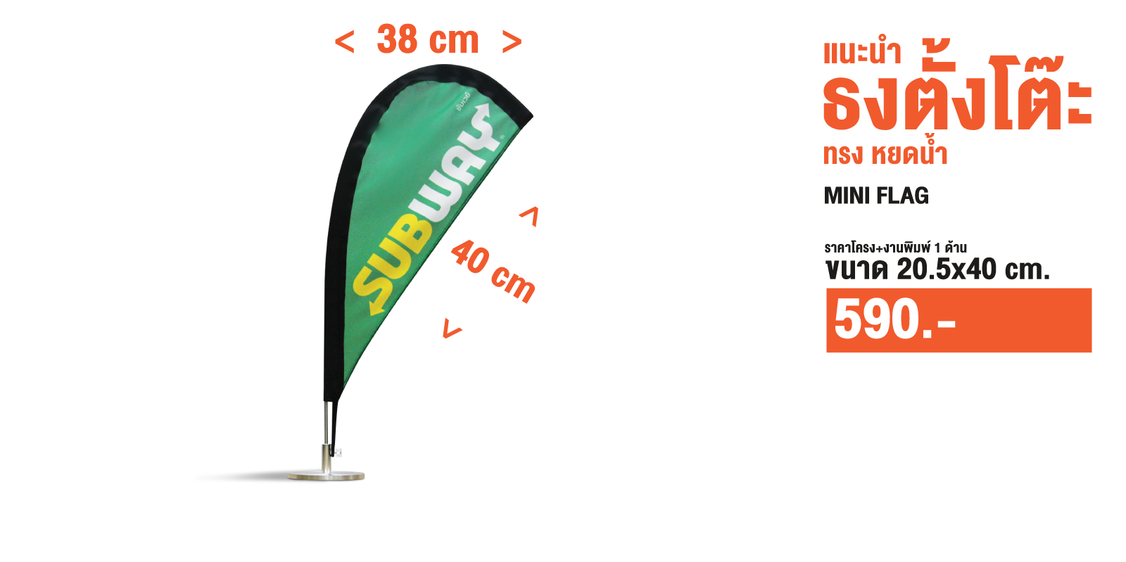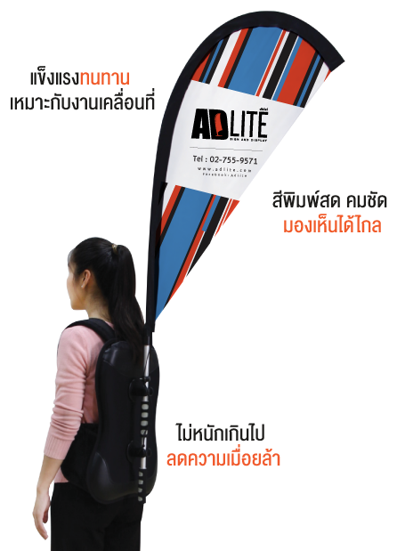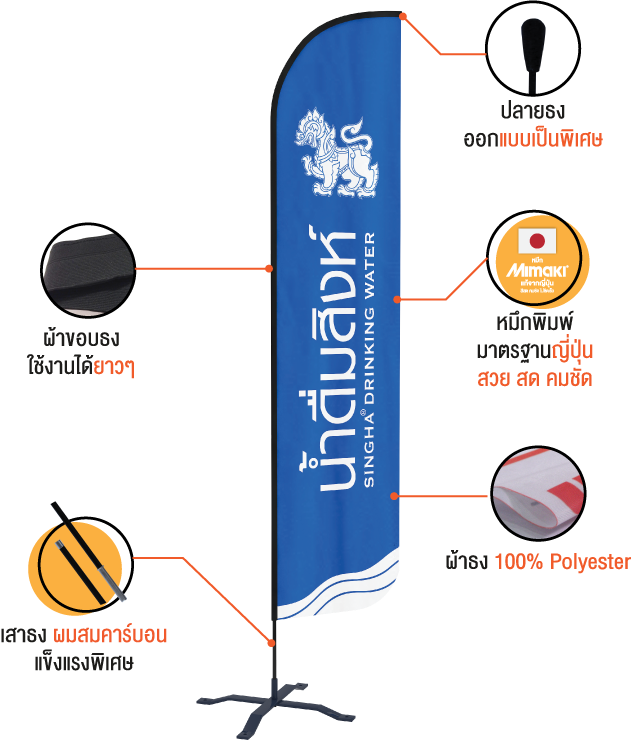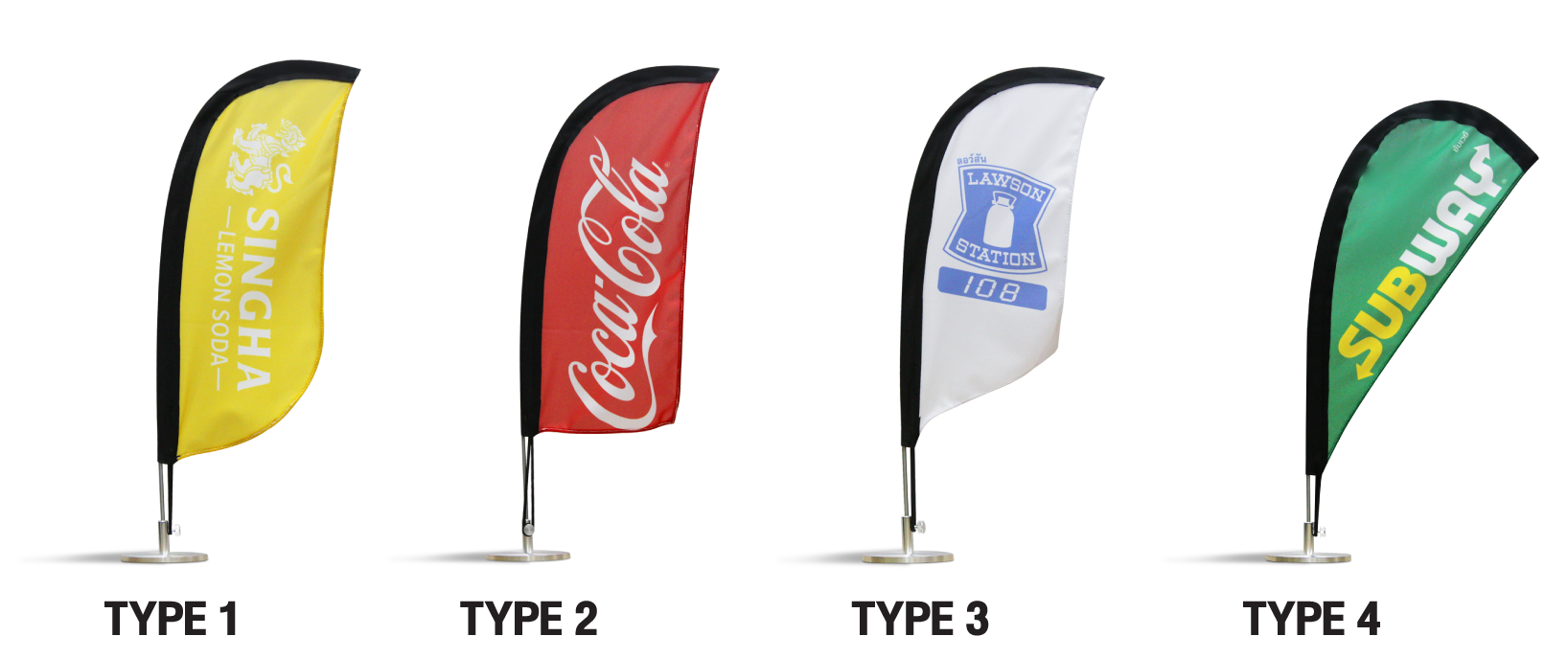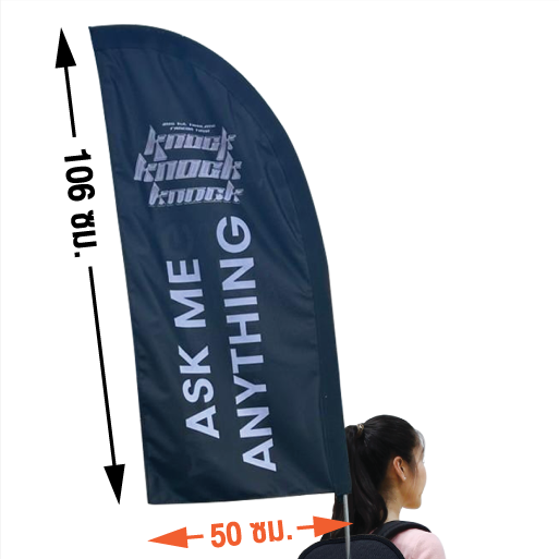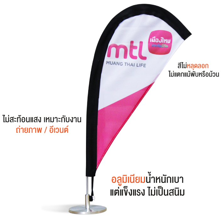 ธงรูปทรงหยดน้ำ เป็นที่นิยมในงานอีเว้นท์ที่เกี่ยวกับกีฬา เหมาะสมกับงานโฆษณาประชาสัมพันธ์ โปรโมทสินค้า อุปกรณ์โฆษณา งานอีเว้นท์ งานวิ่ง วางโปรโมทสินค้าหน้าร้าน หน้า Booth และ Exhibition สะดวกต่อการจัดเก็บ สามารถมองเห็นได้จากระยะไกล และปะทะสายตาได้อย่างโดดเด่น