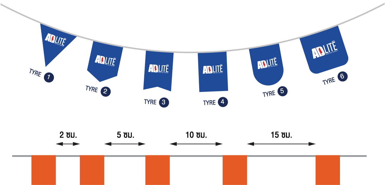 | ความยาวเซือก (ยาว) ม. | ระยะห่าง (ระหว่างธง) ซม. | ระยะปล่อยเซือก (ฝั่งละ) ซม | งานพิมพ์ | ราคา(บาท) 1-9 เส้น | ราคา(บาท) 10-20 เส้น |