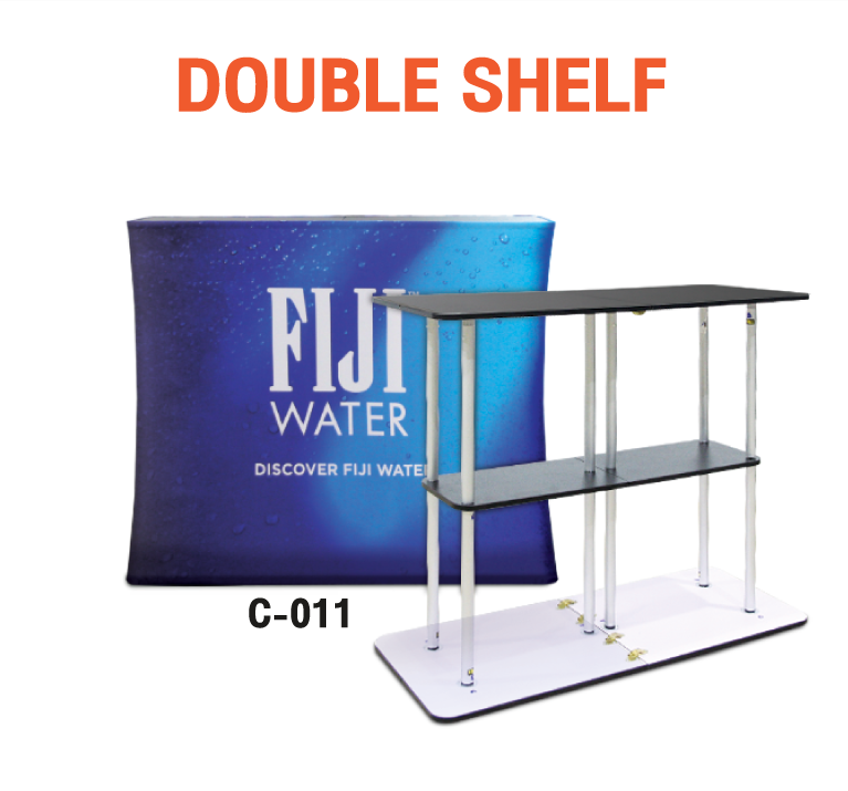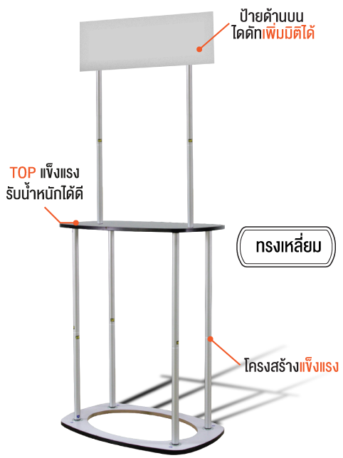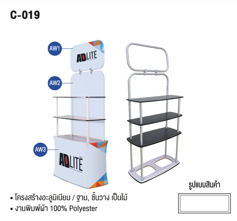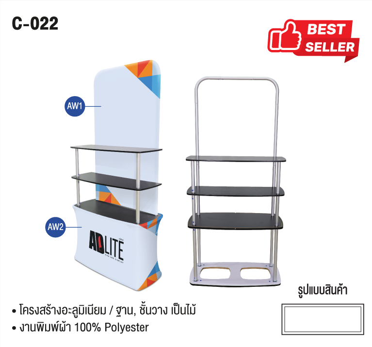 เคาน์เตอร์ผ้าป๊อปอัป เหมาะสำหรับงานเปิดตัวสินค้างานโชว์สินค้าต่างๆ ประกอบด้วยโครงอะลูมิเนียมแบบพับได้, Top แผ่นไม้, ชั้นวางสินค้าแผ่นไม้ ทำให้เคลื่อนย้ายและติดตั้งได้ง่ายเหมาะกับ งาน EVENT, EXHIBITION อุปกรณ์ออกบูธ,เคาน์เตอร์ประชาสัมพันธ์