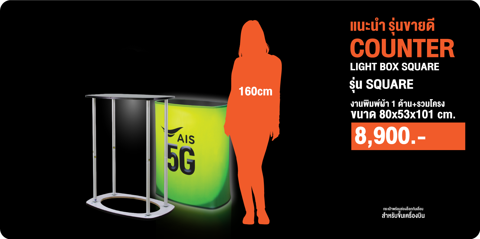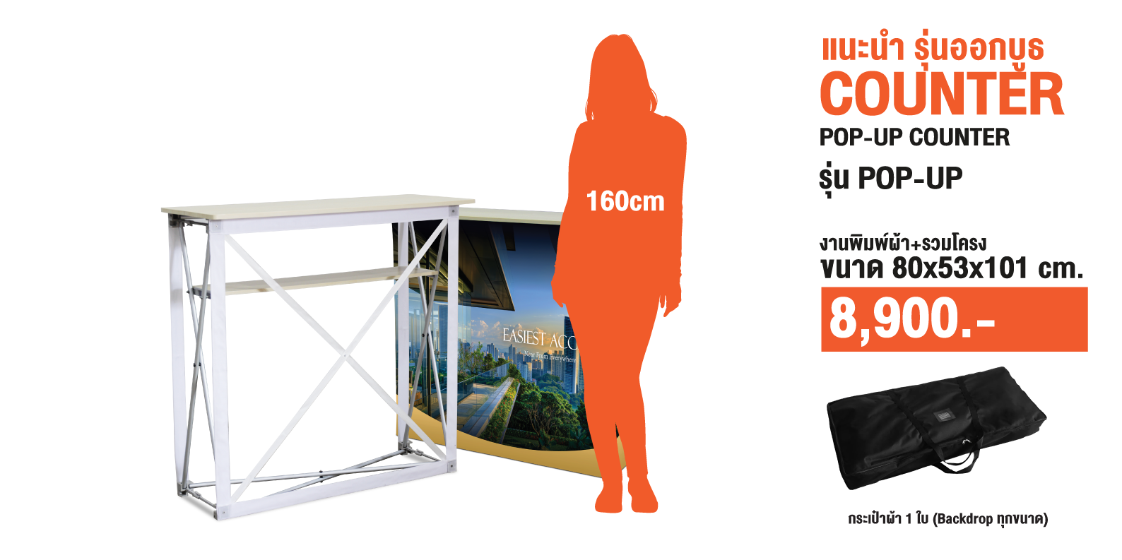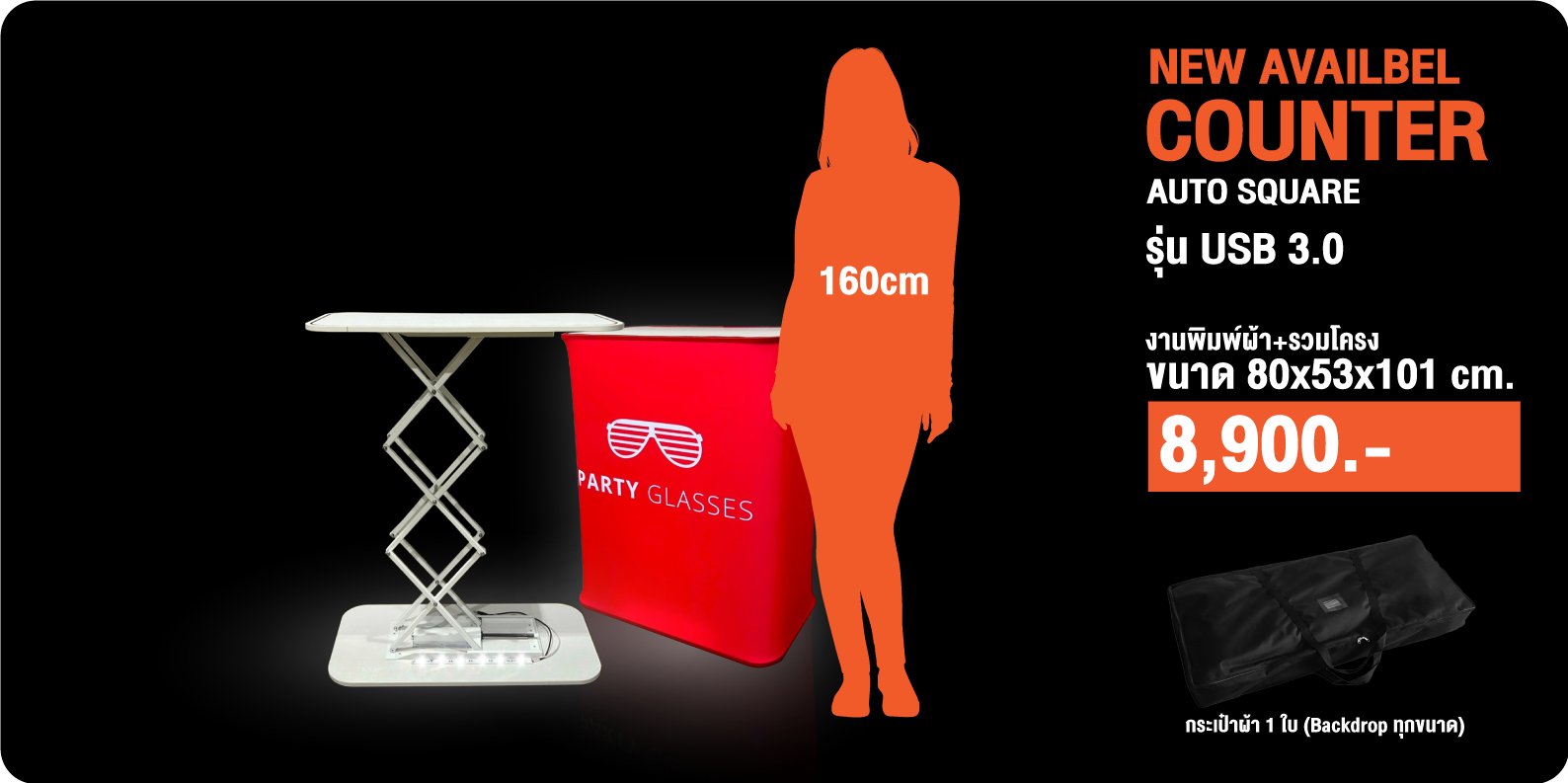 ไม่ต้องกังวล เรื่องไฟ เพราะเคาน์เตอร์ รุ่นใหม่ เหมาพสำหรับ ออก EVENT หรืองานจัดแสดงและไม่ต้องกังวล ประกอบหรือพับเก็บง่ายเพียงดึงขึ้น และ จัดเก็บเพียงแค่พับลง