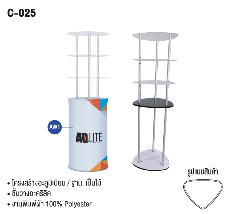ชั้นวางสินค้า เคาน์เตอร์วางสินค้าออกบูธ (Display Rack) ชั้นวางสินค้ารูปแบบผ้าวางโชว์ สินค้า รูปทรงโดดเด่นสวยงาม สะดุดตา น้ำหนักเบา จัดเก็บง่ายเหมาะกับการใช้งาน Indoor โครงสร้างถอดประกอบได้แบบไม่ยุ่งยากซับซ้อนเหมาะสำหรับงานเปิดตัวสินค้า และงานโชว์ สินค้า ในงานอีเวนท์ต่างๆ