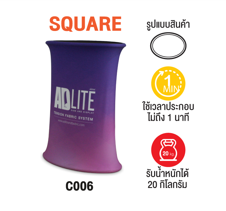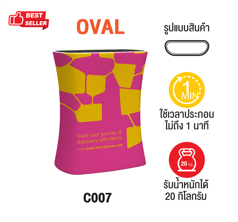ประกอบง่ายใช้เวลาน้อยไม่ถึง 1 นาที แล้วเสร็จเหมาะสำหรับงานออกบูท ออกงานบอกสถานที่ต่างจังหวัด ประกอบด้วยด้วยโครง และผ้าพิมพ์ มี 2 รุ่น คือ Oval และ Square