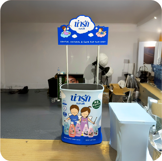 สามารถติดสติ๊กเกอร์หรือกราฟิกแบรนด์ได้รอบตัวเคาน์เตอร์ และสามารถออกแบบให้เข้ากับภาพลักษณ์สินค้า เพื่อช่วยดึงดูดความสนใจได้มากขึ้น