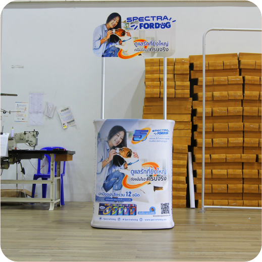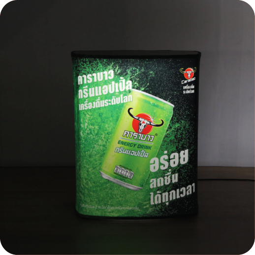 ประกอบง่ายใช้เวลาน้อยไม่ถึง 1 นาที แล้วเสร็จเหมาะสำหรับงานออกบูท ออกงานบอกสถานที่ต่างจังหวัด ประกอบด้วยด้วยโครง และผ้าพิมพ์ มี 2 รุ่น คือ Oval และ Square