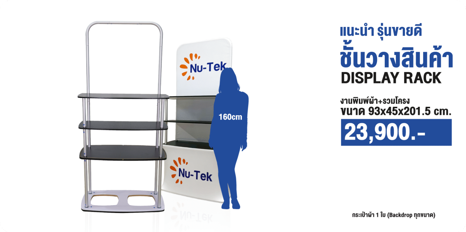 ชั้นวางสินค้า เคาน์เตอร์วางสินค้าออกบูธ (Display Rack) ชั้นวางสินค้ารูปแบบผ้าวางโชว์ สินค้า รูปทรงโดดเด่นสวยงาม สะดุดตา น้ำหนักเบา จัดเก็บง่ายเหมาะกับการใช้งาน Indoor โครงสร้างถอดประกอบได้แบบไม่ยุ่งยากซับซ้อนเหมาะสำหรับงานเปิดตัวสินค้า และงานโชว์ สินค้า ในงานอีเวนท์ต่างๆ