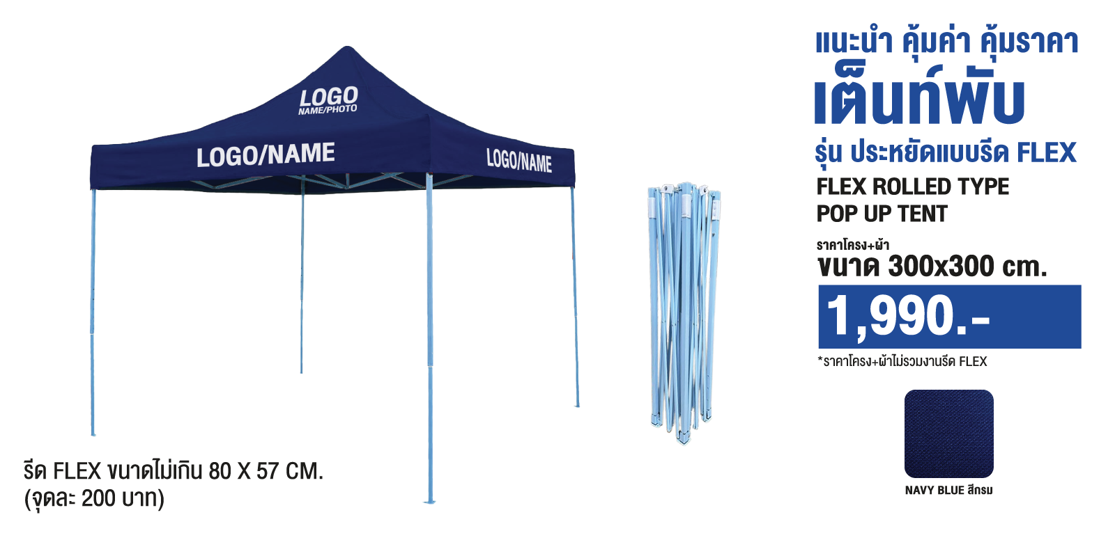 เต็นท์พับ รุ่น ประหยัด (รีด FLEX) ขนาดไม่เกิน 50×50 ซม.