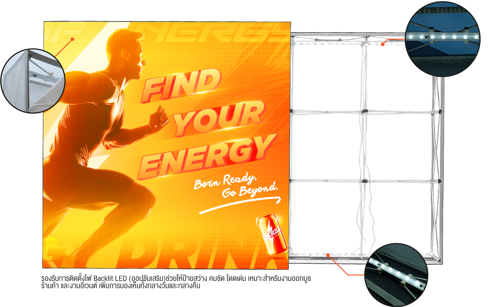 คือฉากหลังและผนังแสดงสินค้าที่ออกแบบมาเพื่อการใช้งานในงานอีเวนต์ บูธแสดงสินค้า และงาน ออกบูธทุกรูปแบบ โครงสร้างอลูมิเนียมแบบป๊อปอัพ แข็งแรง น้ำหนักเบา ติดตั้งง่าย รวดเร็ว พร้อม ผ้าพิมพ์ระบบ SEG ที่ให้ภาพเรียบตึง สวยงาม ไร้รอยต่อ เพิ่มความโดดเด่นให้แบรนด์ของคุณ