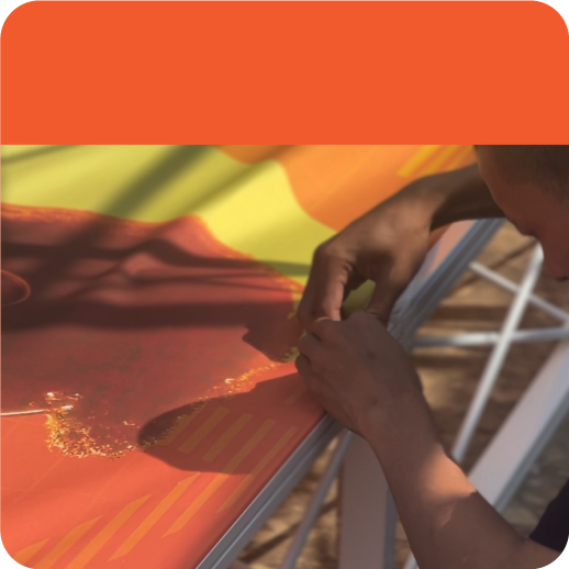 - ผ้าพิมพ์ความละเอียดสูง สีคมชัด เหมาะสำหรับงานแสดงสินค้าและงานประชาสัมพันธ์